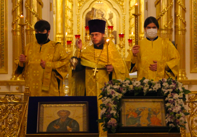 12 декабря клирики собора совершили Всенощное бдение. Богослужение возглавил протоиерей Алексий Зверев.