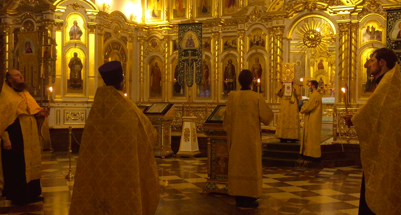 Ему сослужили иерей Евгений Скаковский, иерей Михаил Бычков, диаконы Василий Чирков, Дионисий Гдешинский и Александр Плодухин. Богослужебные песнопения исполнил хор под управлением регента Наталии Летенко. За богослужением было прочитано Евангелие от Луки. На полиелее клириками собора были вынесены для поклонения мощи св. прп. Иоанна Постника Печерского. Преподобный Иоанн Печерский, постник, подвизался в Киево-Печерском монастыре в XII веке и погребен в Ближних пещерах.