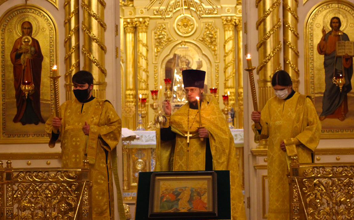 19 декабря клирики собора совершили Всенощное бдение. Богослужение возглавил протоиерей Алексий Зверев.