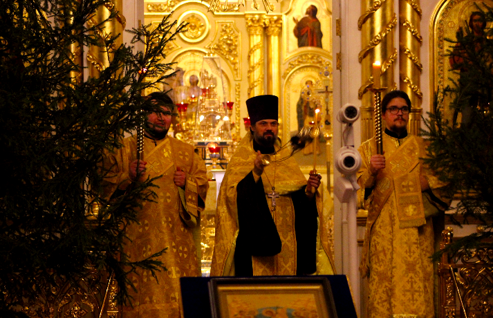 31 декабря, в Неделю 29-ю по Пятидесятнице секретарь епархии ключарь собора протоиерей Виктор Хохлов совершил всенощное бдение.